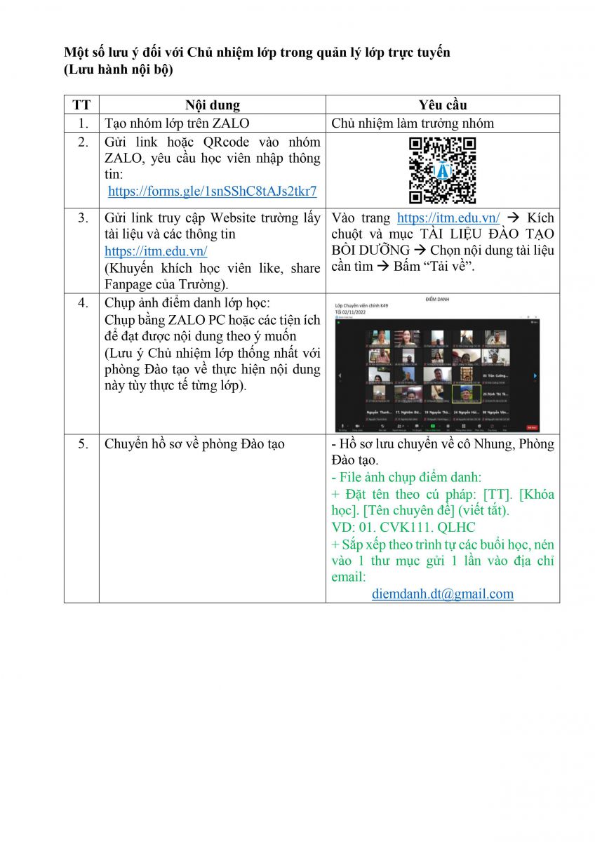 Lưu ý đối với chủ niệm lớp trong quản lý lơp học trực tuyến