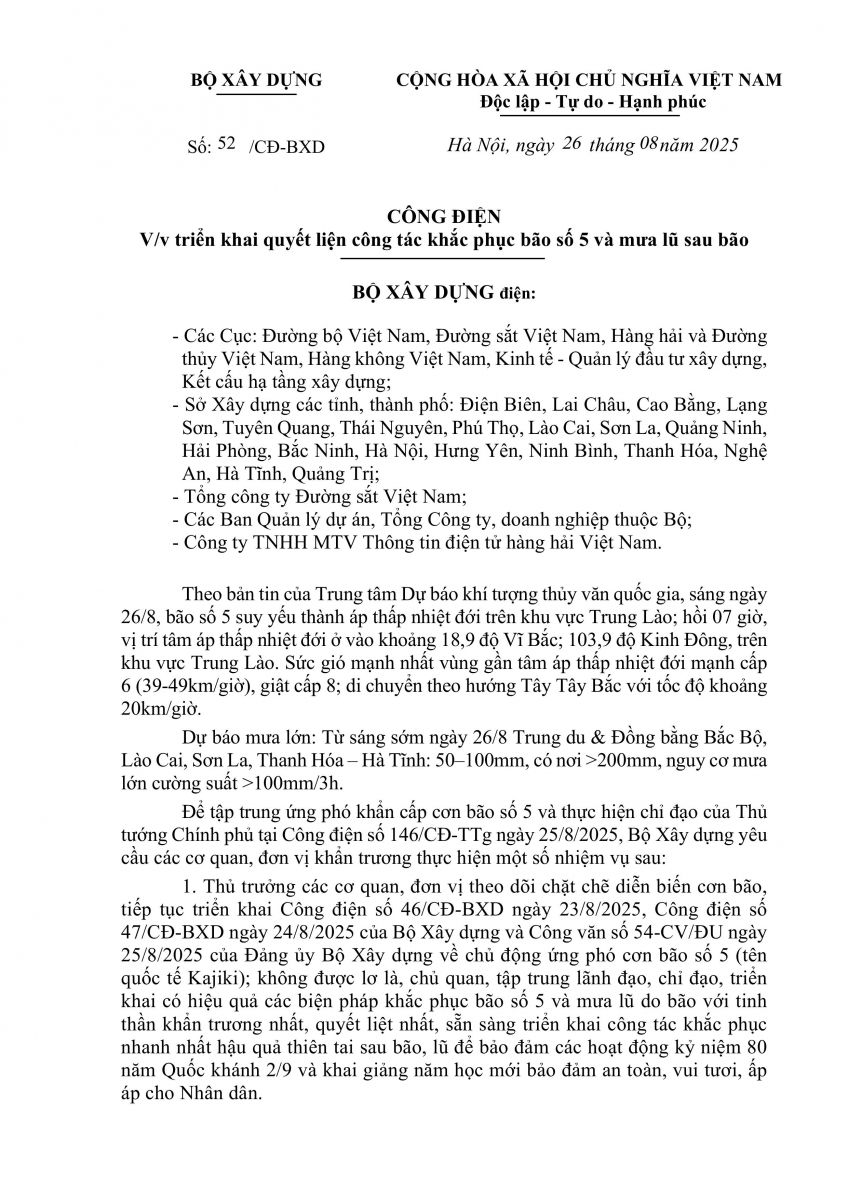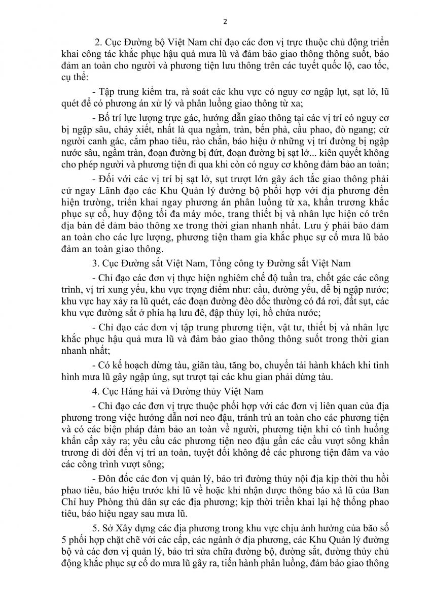 Công điện triển khai quyết liệt công tác khắc phục bão số 5 và mưa lũ sau bão