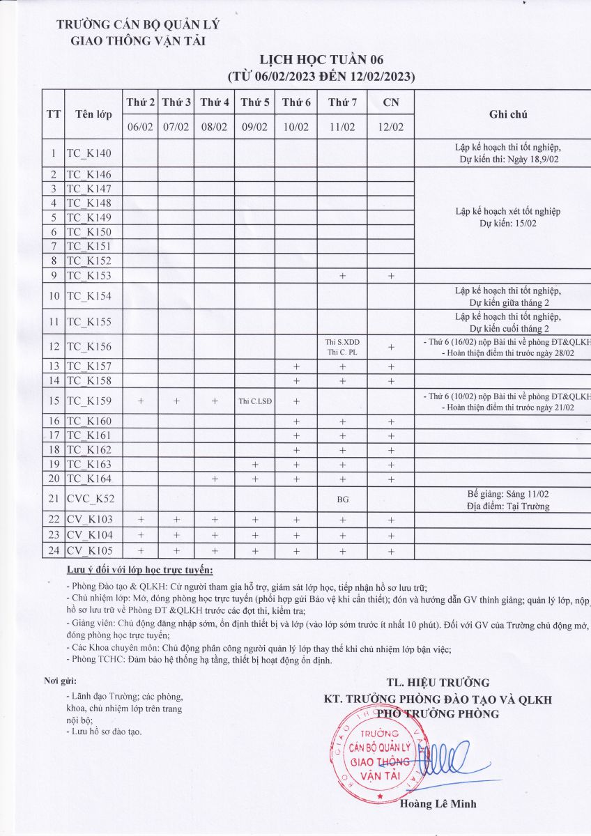 Kế hoạch tuần 06 (từ ngày 06.02 đến ngày 12.02)