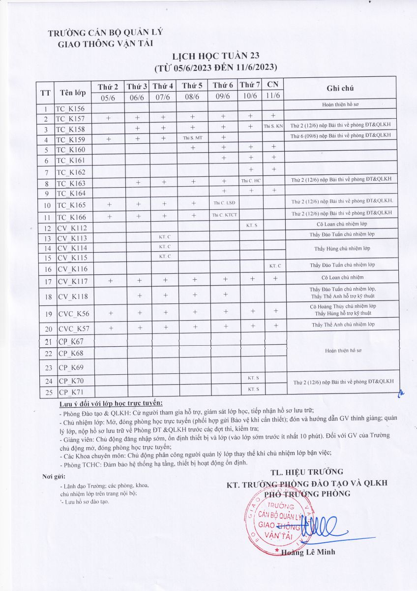 Lịch học tuần 23 (từ ngày 05/6/2023 đến ngày 11/6/2023)