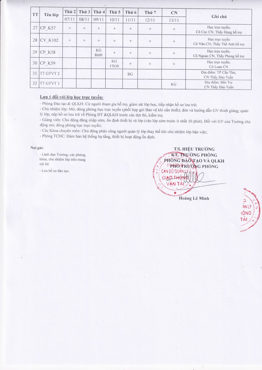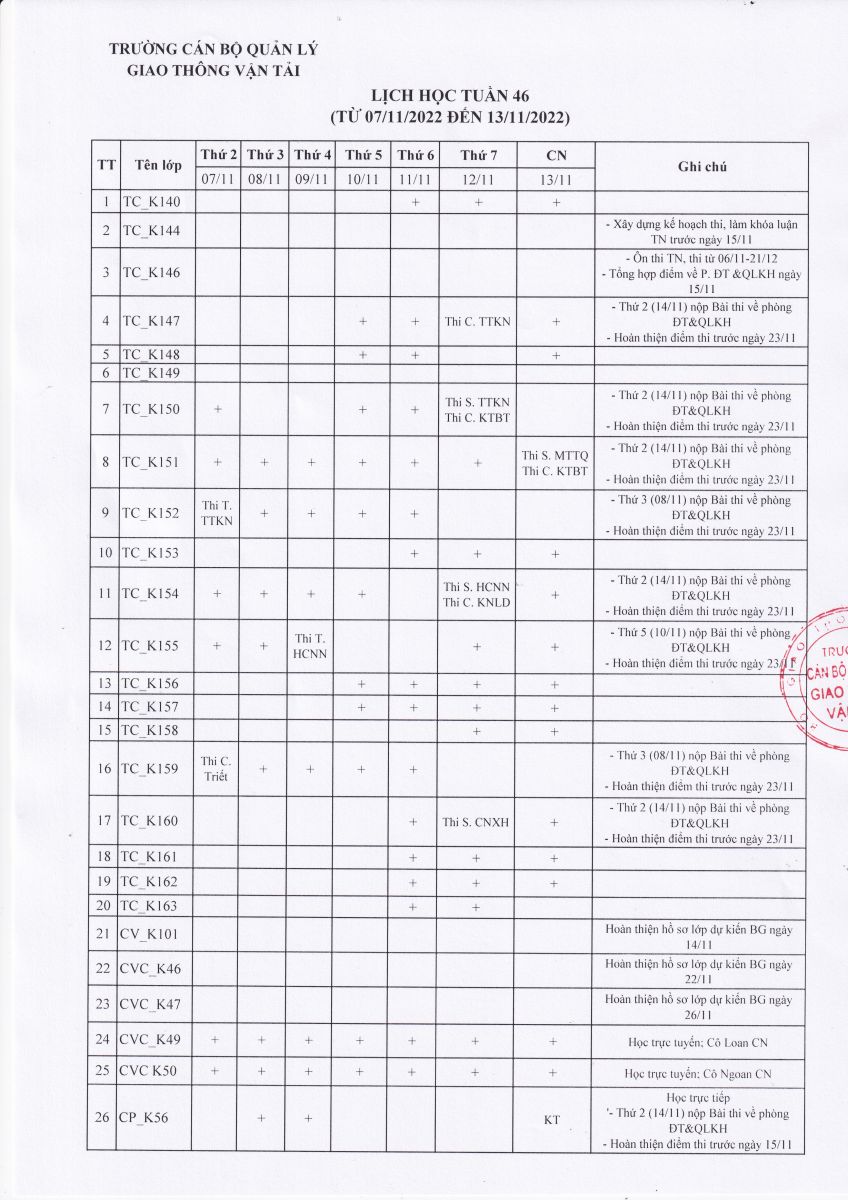 Lịch học tuần 46 ( từ 07/11/2022 - 13/11/2022)
