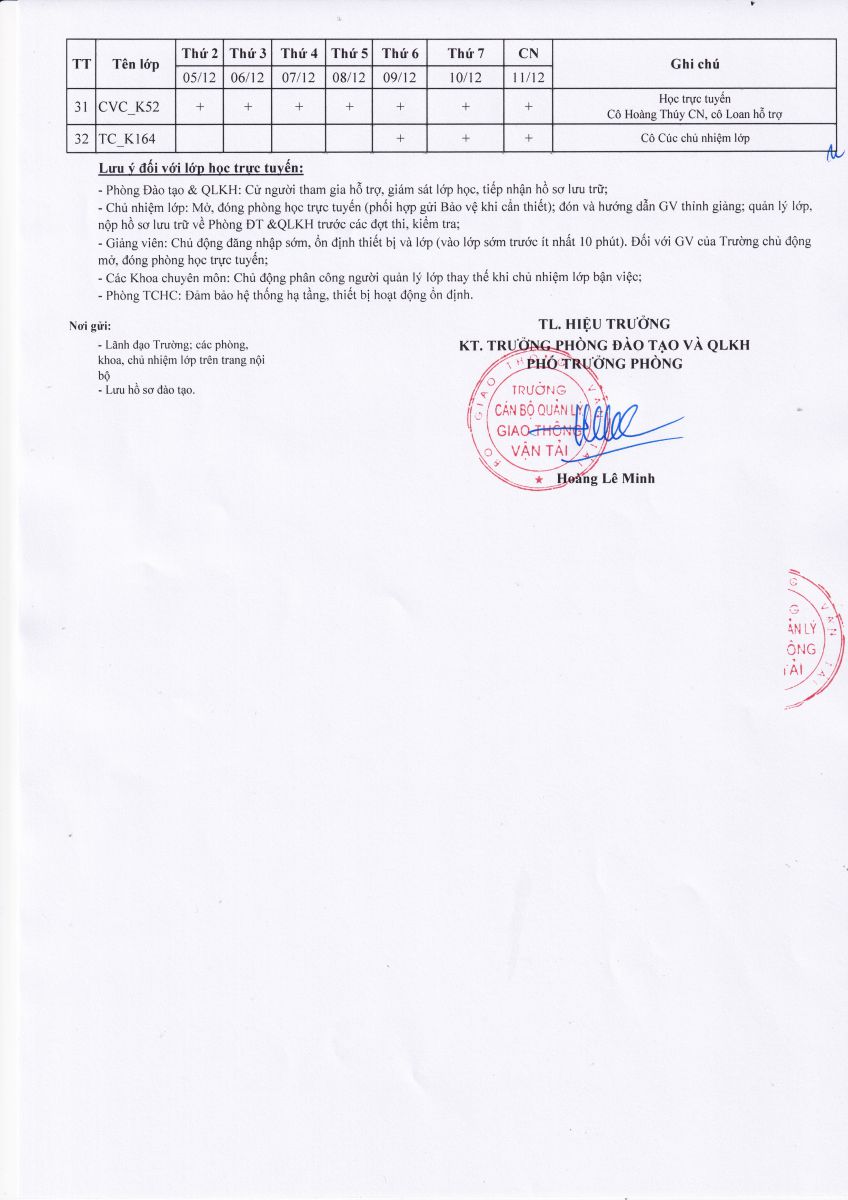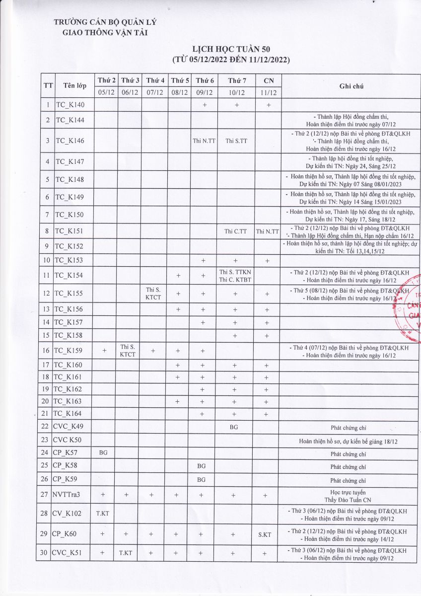 Lịch học tuần 50 ( từ ngày 5.12 đến ngày 11.12)