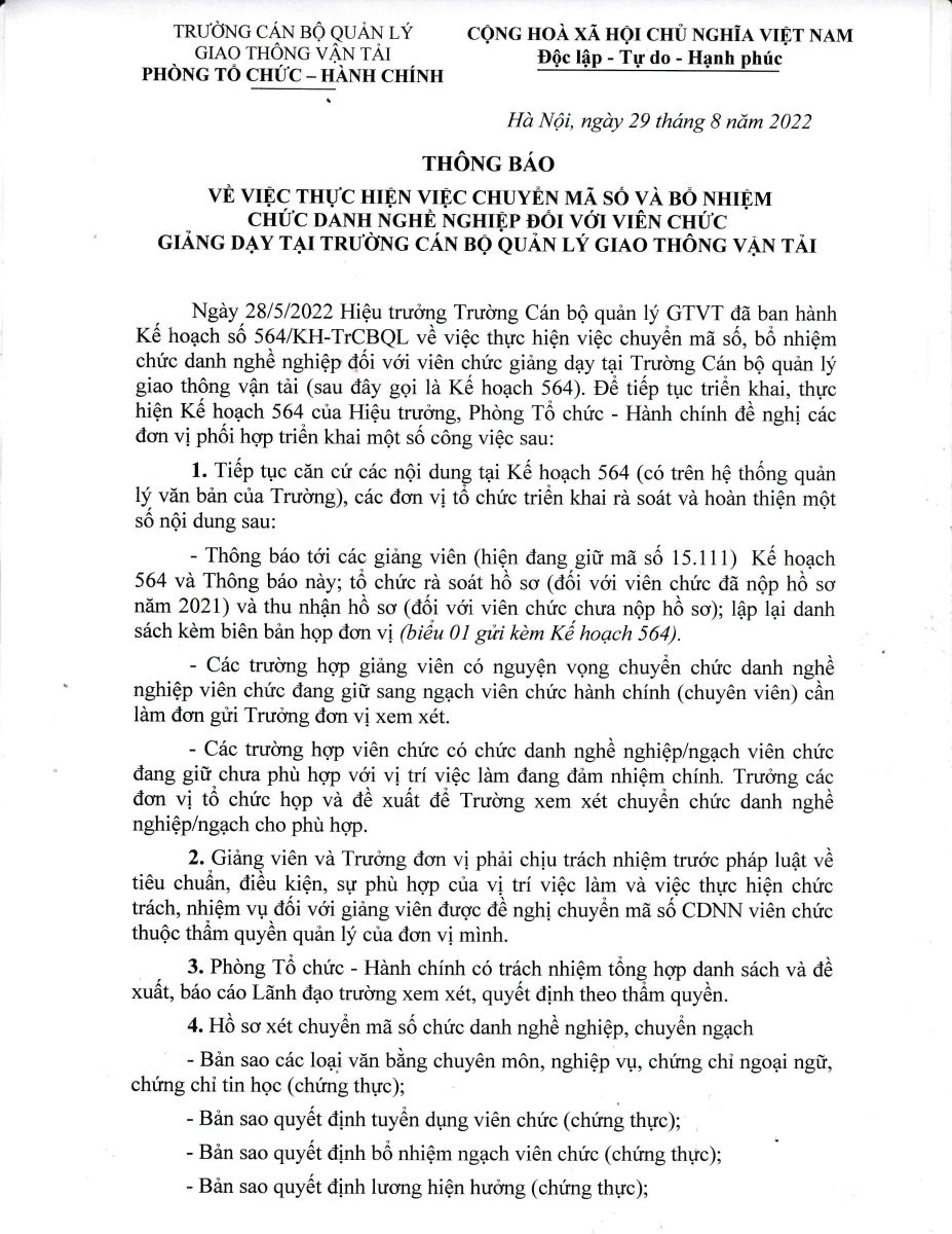 Thông báo về việc thực hiện việc chuyển mã số và bổ nhiệm chức danh nghề nghiệp đối với viên chức!